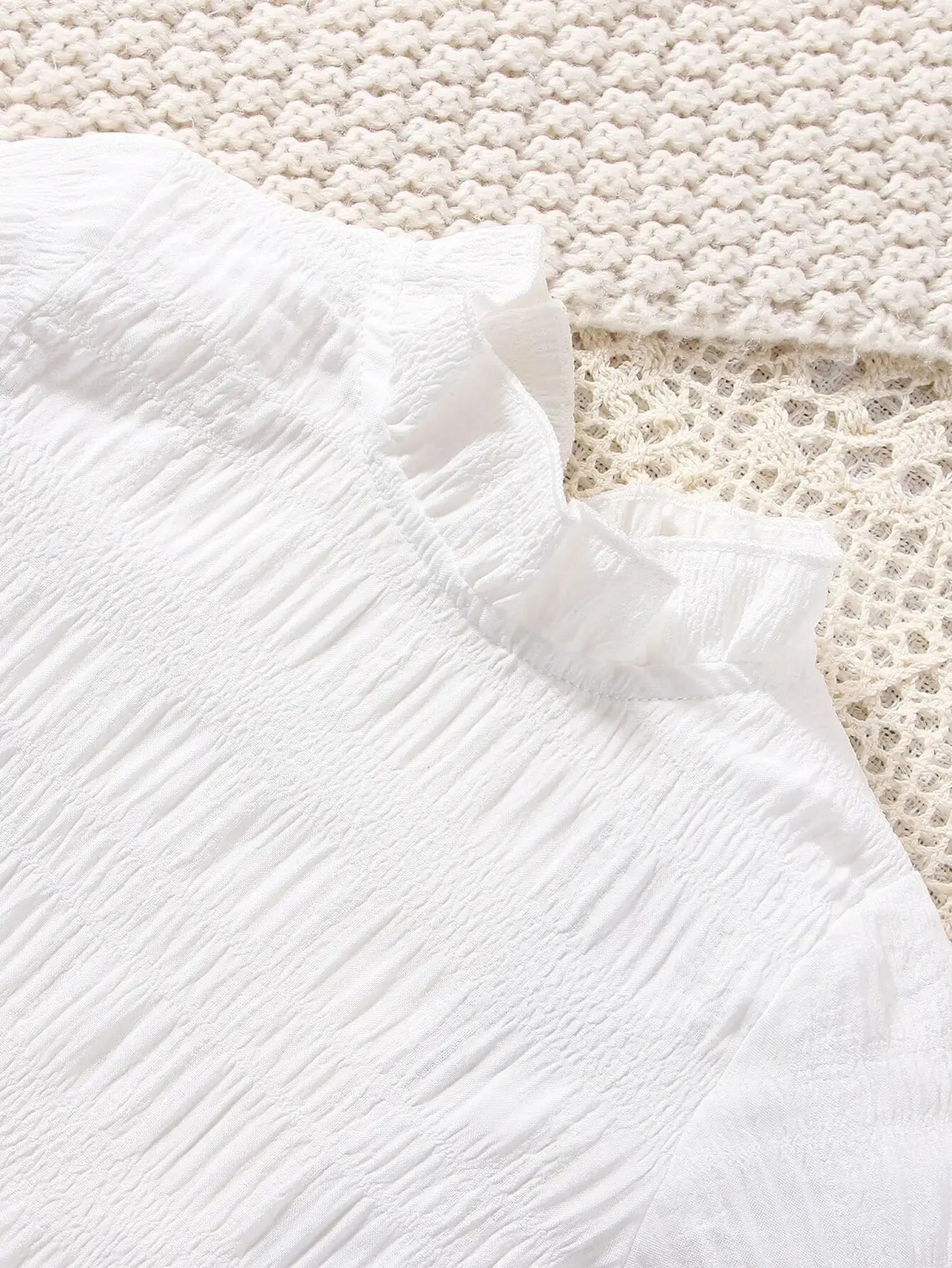 2-Piece Baby Girl Spring and Autumn White Long Sleeve with Black Strap Skirt